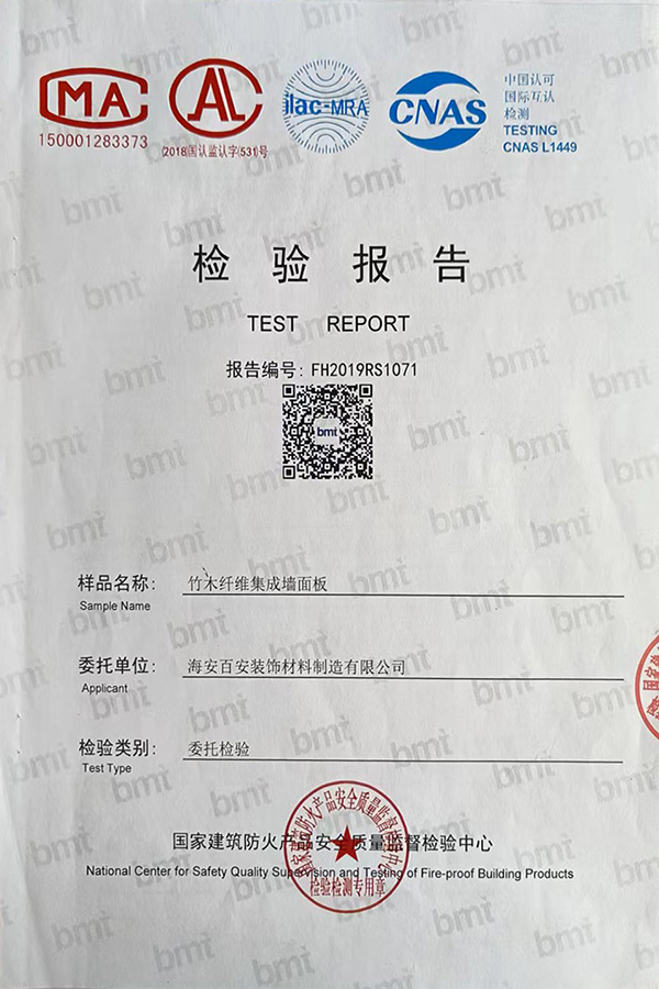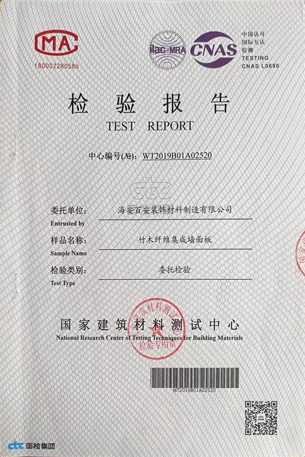 竹木纤维集成墙面板检测报告